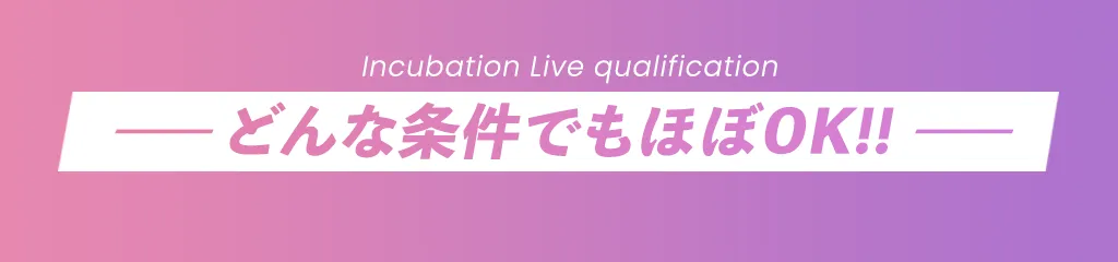 メニュー オーディションについて あなたの好きが叶う 合格特典について 人気クリエイターになる為に Incubation Liveのココが凄い 応募資格について オーディションの流れ よくあるご質問 気になるジャンルをタップしてみよう!! 音楽 ゲーム 洋服 家電 グルメ 映画 恋愛 アニメ 旅行 全くの未経験ですが、大丈夫でしょうか? A 全く問題ありません。 経験は問わず個性を重視いたしますのでお気軽にご参加ください。 オーディションに費用はかかりますか? A いいえ。オーディション参加において費用は発生しませんので安心してご参加ください。 個性が分からないのですが大丈夫ですか? A 大丈夫です。オーディション当日、ディレクターがお話を通してあなたの個性を見つけます。 地方に住んでいるのですが大丈夫ですか? A はい。全国どこでも参加OKです。オンラインで参加なので気軽にエントリーして下さい。 © Incubation-Live